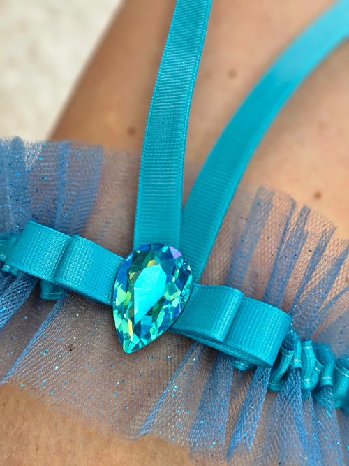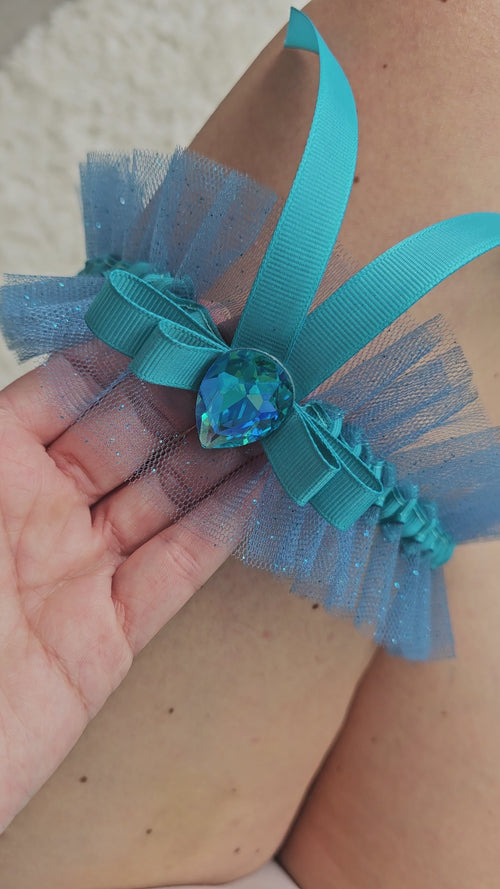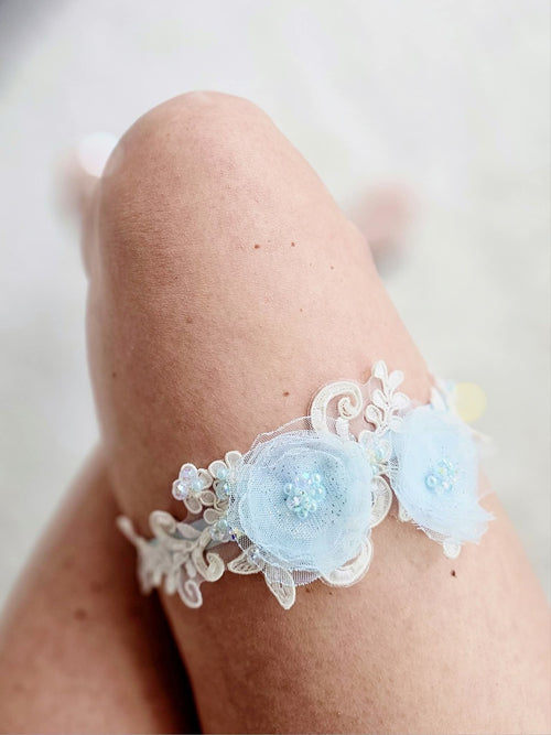 Kolekcja Pearls.Podwiązka z tiulu z koronką i perłami