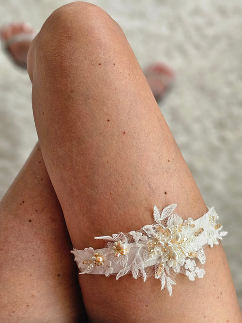 Romantyczna Podwiązka ślubna z najnowszej kolekcji PEARLS - najmodniejszym w tym sezonie ślubnym