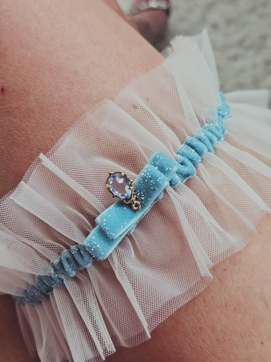 Dodaj odrobinę luksusu i elegancji z naszą przepiękną podwiązką ślubną w kolorze ivory z brokatową tasiemką i błyszczącym diamentem, która będzie idealnym dodatkiem w Twojej stylizacji ślubnej. Podwiązka jest tworzona z najlepszej jakości materiałów w Naszej pracowni. Ta podwiązka jest prawdziwym dziełem sztuki.